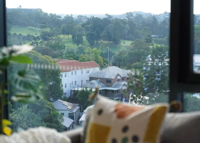 L'appartement est niché dans le quartier "Spring Hill" à Brisbane, à proximité immédiate de Rock. Le Parc Wilson Outlook Reserve est situé à environ 25 minutes à pied de la résidence.